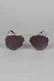 These sunglasses feature aviator style frames, multi-tone fabric trim, double bridge nose, and nose cushions.