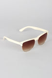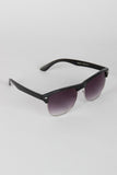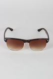 These sunglasses feature a wayfarer inspired design, semi-rimless trim, plastic and metal framing, ombre effect lenses, and nose cushions.