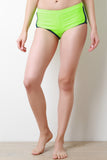 These swim bottoms feature boy shorts cut, contrast color trim, and finished with lining. Accessories sold separately. Shell: 80% Nylon, 20% Spandex. Lining: 100% Polyester.