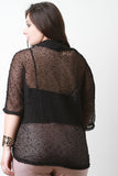 A plus size sweater top feature a boucle semi-sheer loose knit, twisted front design with a plunging neckline, and three-quarters sleeves. Accessories sold separately. Made in U.S.A. 87% Polyester, 10% Rayon, 3% Spandex.