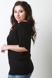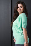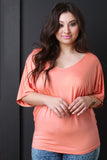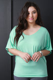 This casual plus size top features soft jersey knit, round neckline, and short dolman sleeves. Accessories sold separately. Made in U.S.A. 95% Rayon, 5% Spandex.