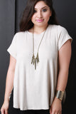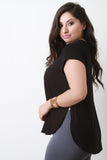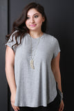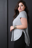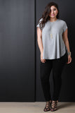 This tunic top features a ribbed knit fabrication, round neckline, and cap sleeve construction. Finished with a round hemline with high side slits. Accessories sold separately. Made in U.S.A. 95% Rayon, 5% Spandex.