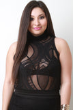 This plus size top features oval pattern semi-sheer lace fabrication, mock neckline, sleeveless design, wide panel hemline, and zipper fastener at back. Accessories sold separately. Made in U.S.A. 97% Nylon, 3% Spandex.