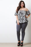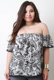 This plus size top features a lightweight weave fabrication, floral print throughout, and elasticized neckline and bell sleeves. Finished with a crochet detailed hemline. Accessories sold separately. Made in U.S.A. 100% Polyester.