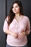 This plus size top features rib knit, zip-up neck, dolman sleeves, and ruched sides. Accessories sold separately. 88% Rayon, 12% Polyester.