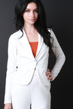 This blazer features a stretchy crepe texture fabric, form-flattering seams, and a single button closure. Finished with faux side pockets. Accessories sold separately. 97% Polyester, 3% Elastane.