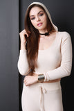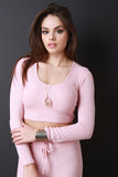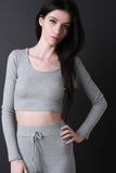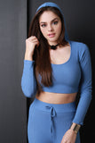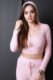 This top features thermal knit fabrication, hooded round neckline, long sleeves, and a crop hemline. Accessories sold separately. Made in U.S.A. 95% Rayon, 5% Spandex.