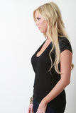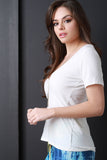 This soft jersey knit t-shirt features a scoop neckline, and a short sleeve. Accessories sold separately. Made in U.S.A. 95% Rayon, 5% Spandex.