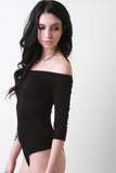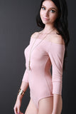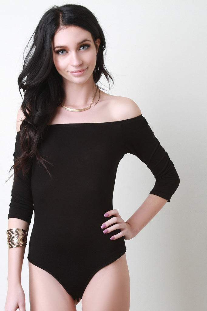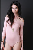 This bodysuit features an elasticized off the shoulder neckline, long sleeves design, and finished with double button snap closure at crotch for easy on/off. Accessories sold separately. Made in U.S.A. 95% Viscose, 5% Spandex.