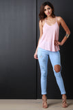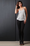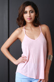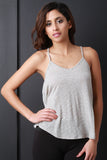 This tank top features a v neck, spaghetti straps, loose fit, and a soft knit fabrication. Accessories sold separately. Made in U.S.A. 96% Rayon, 4% Spandex