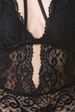 A sleeveless floral lace bodysuit featuring thin halter straps that tie at the neck, and a plunging v-neckline. Accessories sold separately. 96% Polyester, 4% Spandex.