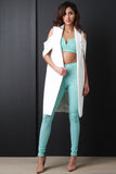 This unique vest blazer features open front, classic lapel, open shoulders, arm openings for two different looks, and finished with lining. Accessories sold separately. Shell: 100% Polyester. Lining: 100% Polyester.