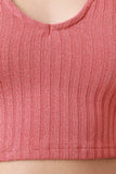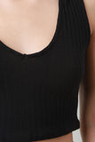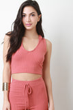 This crop top features a sleeveless design, a v cut neckline, cropped hem, hooded, rib knit fabrication. Accessories sold separately, Made in U.S.A. 95% Polyester. 5% Spandex.
