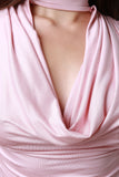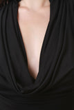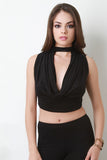 This top features a smooth jersey knit fabrication, choker neckline, front keyhole with draped cowl detail, and exposed rear zipper closure. Finished with a cropped hemline. Accessories sold separately. Made in U.S.A. 97% Modal, 3% Lycra.