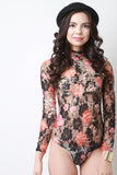 This enchanting bodysuit features semi-sheer floral mesh lace, mock neck, long sleeves, back keyhole cutout with nape button closure, and double snap button at crotch for easy on/off. Accessories sold separately. Made in U.S.A. 95% Polyester, 5% Spandex.
