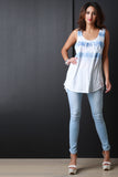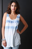 This sleeveless design, front chest pocket, raw hem, knit fabrication, finished with tie dye coloring. Accessories sold separately. Made in U.S.A. 100% Cotton