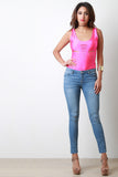 This edgy bodysuit features smooth stretch fabric, scoop neckline, multiple slits, sleeveless construction, and deep scoop back. Accessories sold separately. Made in U.S.A. 80% Nylon, 20% Spandex.