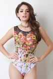 This bodysuit features a semi sheer fabrication, rounded neckline, floral print pattern, and finished with s double snap crotch closure. Accessories sold separately. 95% Polyester, 5% Spandex.