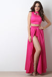 This top features a scuba knit fabrication, round neckline, sleeveless fit, and finished with a cropped hemline. Accessories sold separately. Made in U.S.A. 100% Polyester.