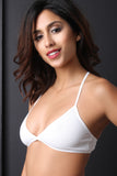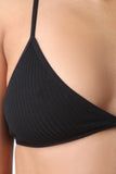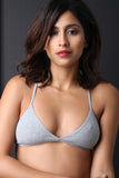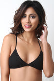 This bralette features a ribbed knit fabrication, elasticized spaghetti shoulder straps and a crisscross back. Accessories sold separately. 96% Cotton, 5% Spandex.