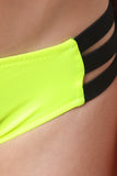 This self-tie halter bikini top features a contrasting trimming with strappy longline design, hook closure at back, and removable padded cups. Bikini bottom features a low-rise cut, 3-contrasting side straps, and fully lined. Accessories sold separately. 82% Polyamid, 18% Elastan. Lining: 100% Polyester.