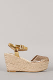 Give your feet a treat with this cute platform wedge! Featuring round toe with sparkling glitter accent, espadrille platform, and wedge heel. Finished with lightly padded insole and adjustable ankle strap with buckle closure.