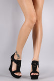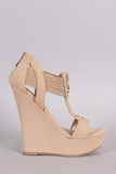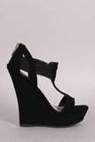 This lovely wedge features a smooth nubuck upper with perforated detail, thin elasticized ankle straps design, wrapped platform, and wedge heel. Finished with lightly padded insole and convenient back-zip closure.