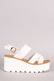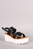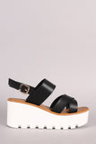This chic wedge features an open toe silhoutte, crisscross strap design across vamp, slingback construction and lug sole. Finished with a lightly padded insole and adjustable ankle strap with side buckle fastening.