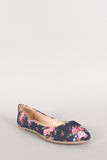 This fabulous ballet  floral  print denim upper, almond toe, scooped vamp, lightly padded insole, and easy slip on style.