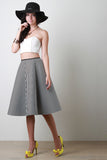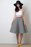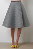 This stripe print fabric, elastic waist line, flared silhouette, and finished with midi length. Accessories sold separately. Made in U.S.A. 95% Polyester, 5% Spandex.