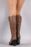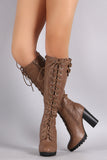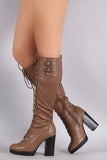 Wild Diva Lounge Lace Up Combat Heeled Platform Knee High Boot