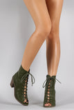 Breckelle Combat Lace Up Peep Toe Heeled Ankle Boots