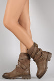 Strappy Buckled Sweater Shaft Mid Calf Boots