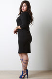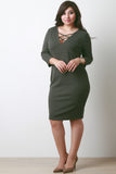 Crisscross V-Neck Quarter Sleeves Midi Dress
