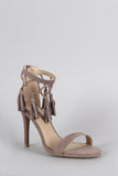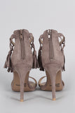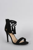 A faux suede tassels design, and stiletto heel. Finished with a back zipper closure and lightly padded insole.
