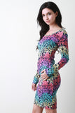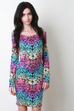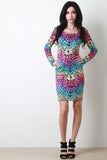 Multi-Tone Damask Long Sleeve Bodycon Dress