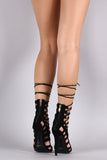 Suede Strappy Caged Lace Up Stiletto Heel