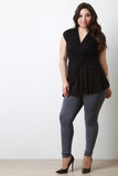 A plus size sleeveless top featuring a comfy jersey knit, v-neckline, and a tucked and ruched design at the front. Accessories sold separately. Made in USA. 95% Polyester, 5% Spandex.