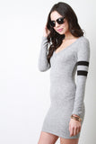 Melange Fleece Striped Sleeve Mini Dress