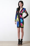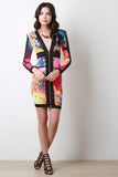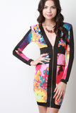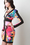 • Floral Abstract Print Zipper Front Bodycon Dress