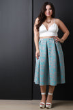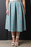 This plus size skirt features pleated scuba knit, contrast floral motif, and midi length. Accessories sold separately. Made in U.S.A. 96% Polyester, 4% Spandex.