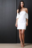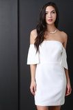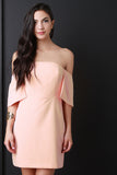 This sheath dress features an off-the-shoulder neckline, half cape construction, princess seams, and hidden back-zip closure. Fully lined. Accessories sold separately. Self: 97% Polyester, 3% Spandex. Lining: 100% Polyester.
