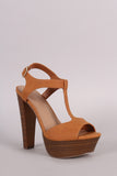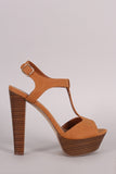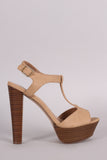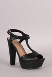 This platform and chunky heel. It is t-strap silhouette with an adjustable ankle strap.