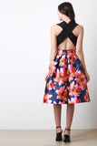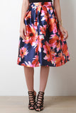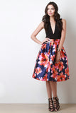 This pleated skirt features an abstract floral print, high waisted wide panel, zipper fastener at back, and skirt lining. Accessories sold separately. 100% Polyester.