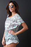Tribal Print Round Neck Cap Sleeve High Low Top