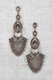 These festival ready earrings feature a bronze metal finish, filigree design with rhinestone detail post backs.