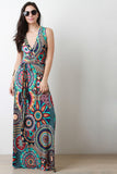 Boho Print Surplice Wrap Maxi Dress