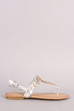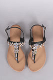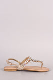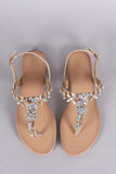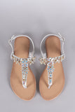 Cluster Jeweled T-Strap Slingback Thong Flat Sandal