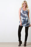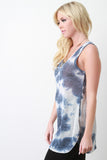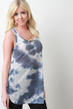 This tunic top features a soft stretchy knit fabrication, tie dye print throughout, scoop neckline, and sleeveless construction. Finished with a rounded hemline. Accessories sold separately. Made in U.S.A. 78% Polyester, 22% Rayon.