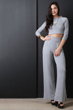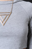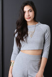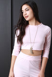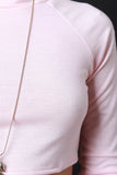 This crop top features soft jersey knit, round neckline, and long raglan sleeves. Accessories sold separately. Made in U.S.A. 87% Polyester, 10% Rayon, 3% Spandex.
